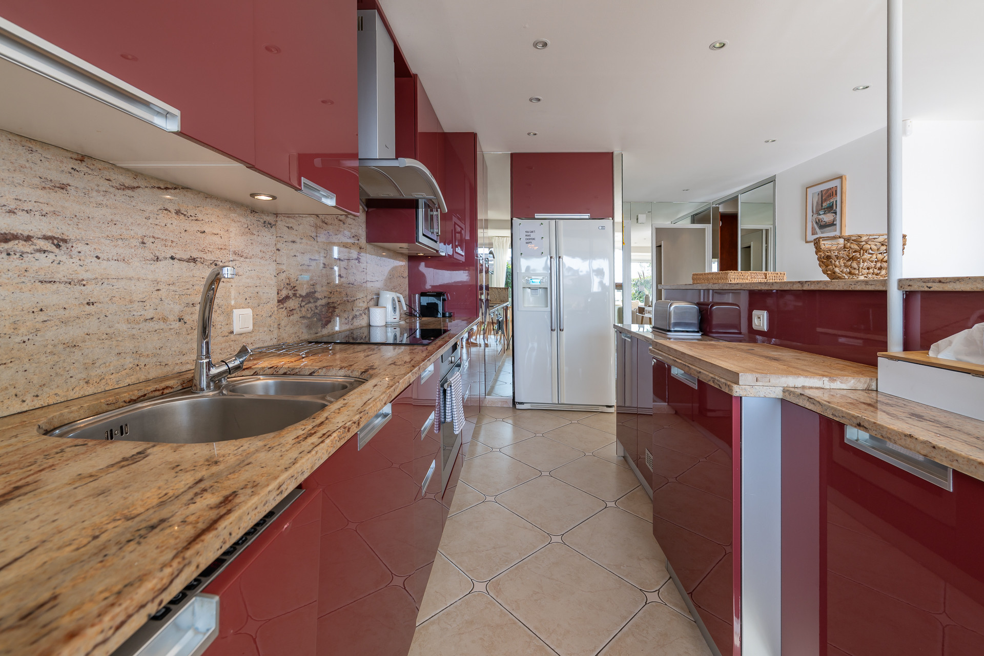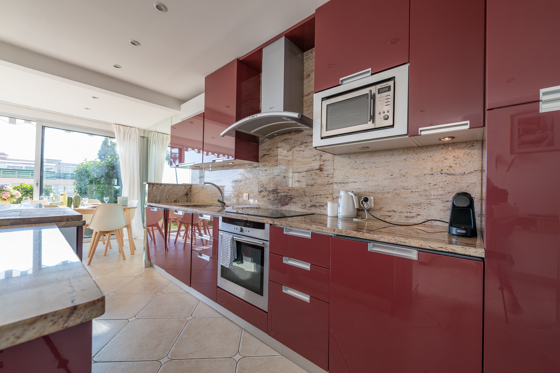 The American kitchen, fully equipped, will allow you to cook like at home: refrigerator, oven, microwave, dishwasher, coffee maker, dishes and cutlery are at your disposal.