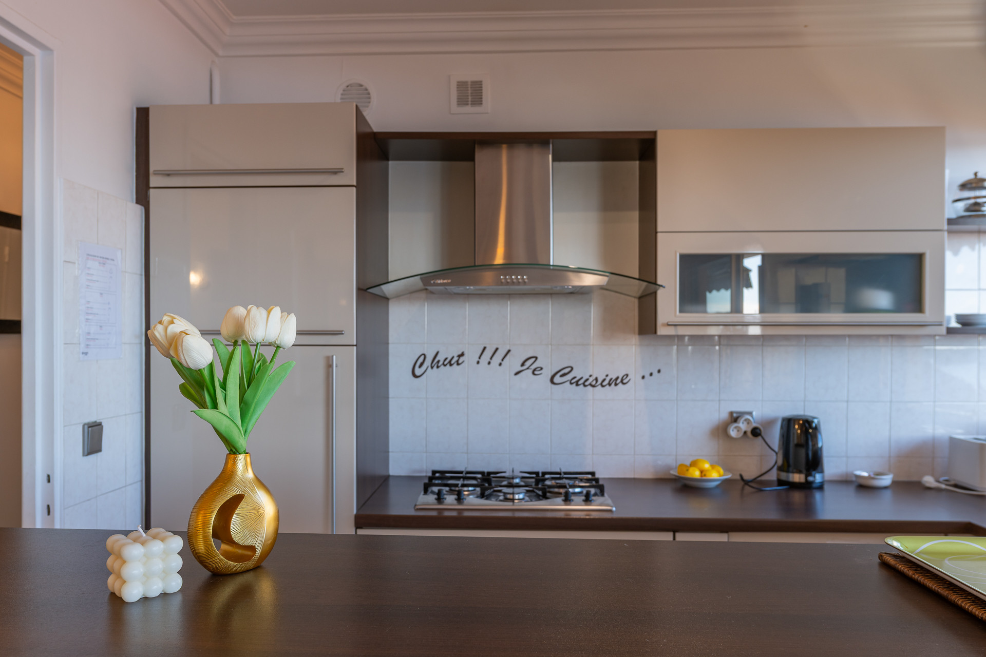 Интерьер оснащен спальней с двуспальной кроватью и дополнительным диваном-кроватью, что обеспечивает комфортный сон для всех. Полностью оборудованная американская кухня позволит вам готовить вкусные блюда с помощью современного оборудования: холодильника, морозильника, кофемашины, духовки, посудомоечной машины, микроволновой печи, тостера и чайника.