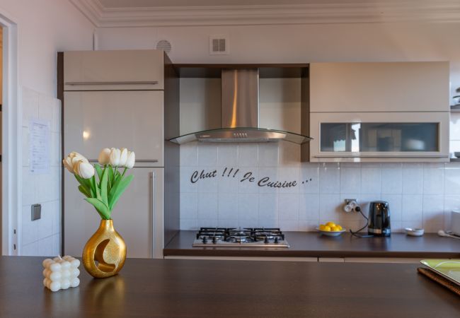 Квартира включает гостиную с открытой кухней, спальню с двуспальной кроватью, дополнительную комнату с двухъярусной кроватью, ванную комнату с туалетом и большую террасу с видом на сады. Включена частная парковка.
